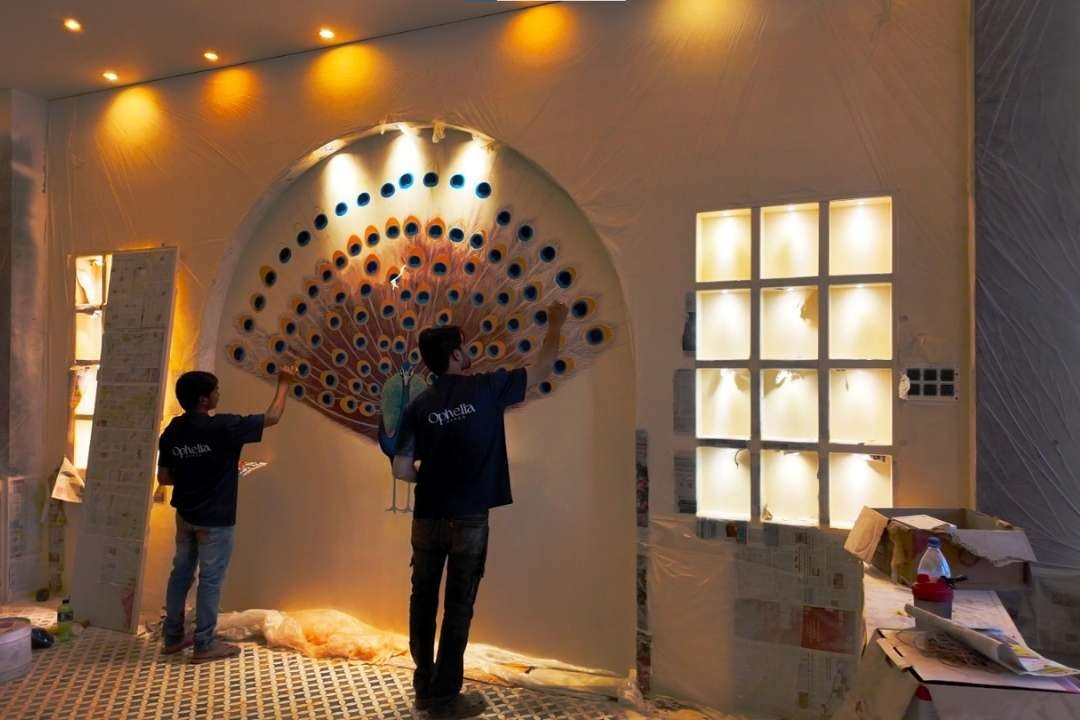 Ophelia Homes had the honor of enhancing the grandeur of Taj Udaipur’s banquet hall through expert interior detailing. Our scope included premium wallpaper installation and handcrafted stucco texture finishes, meticulously executed by our skilled team.